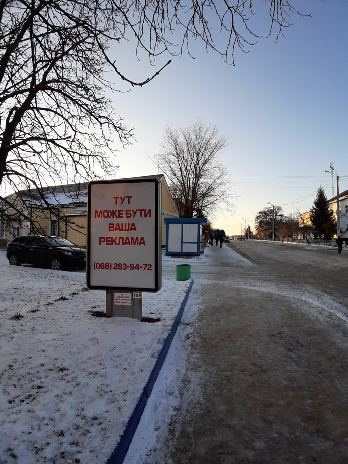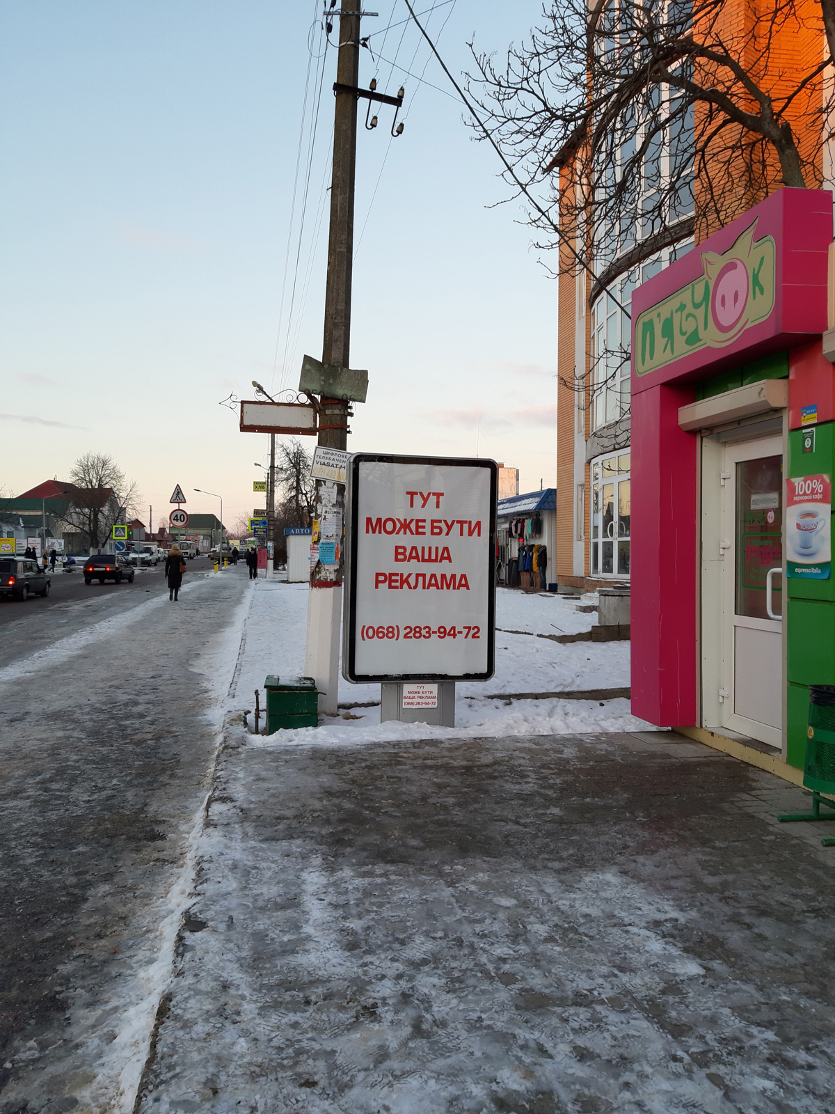 Розміри рекламного поля 1,2 х1,8 м . Рекламне зображення знаходитися на рівні очей пішоходів, водіїв і пасажирів, що забезпечує успішність такої реклами.